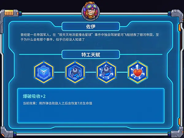 游戏中有着在不同时空中层拯救过世界的英雄们供玩家选择,除了能像传统Roguelike中在地城内收集成长外,在《元能失控》中的英雄们每个人都有自己独特的成长方向和特殊的躲避技巧。